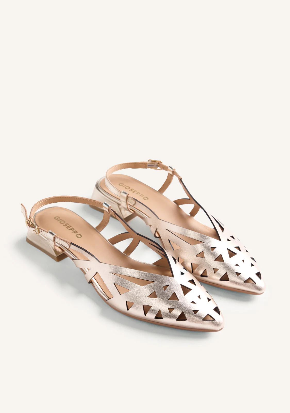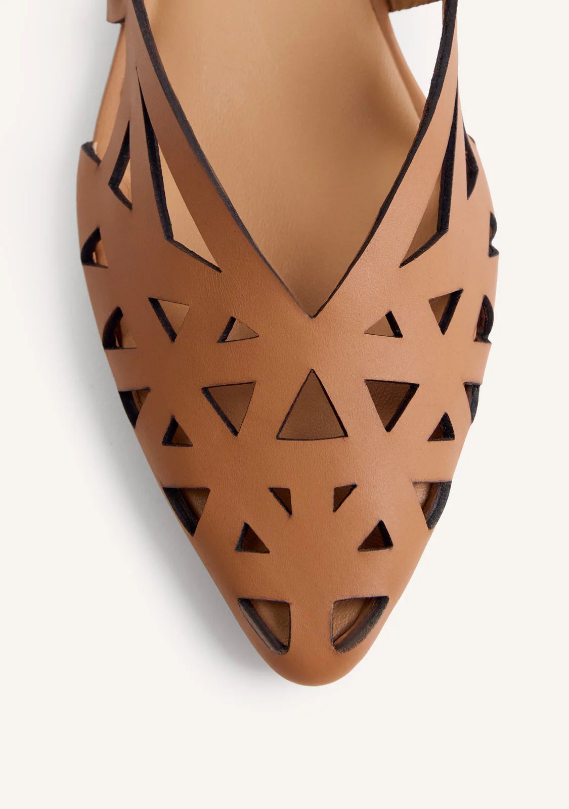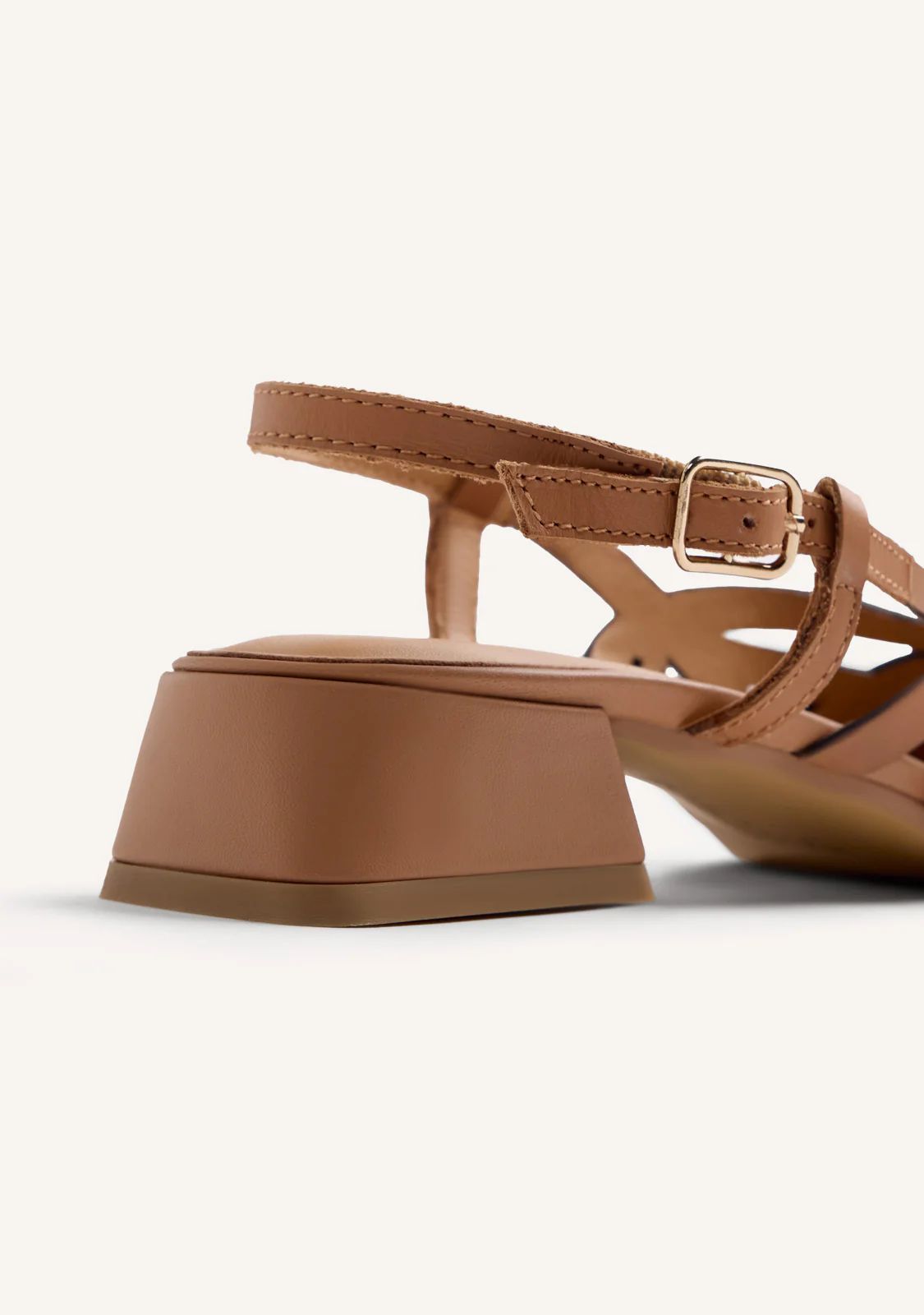 Zapatos de tacón estilo salones destalonados de piel con tiras. Punta afilada. Tacón tipo bloque en forma de trapecio. Cuentan con planta acolchada y cierres ajustables tipo pulsera. Altura tacón: 3 cm.